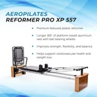 About this item HOME PILATES REFORMER - The AeroPilates Pro XP 557 Reformer provides an elegant system for returning to total health. AeroPilates studies have proven that pilates reformer workouts and following a healthy diet result in weight loss, inches loss, increased strength, reduced stress, and so much more. EFFECTIVE CARDIO FITNESS - Our pilates reformer is equipped with a Cardio Rebounder that provides a fun and effective way to improve functional health. Improve your posture and have a better quality of life with our reformer pilates machine. DYNAMIC SPRING RESISTANCE - This reformer is equipped with four heavy-duty springs, two low resistance blue, and two high resistance yellow springs, for a wide variety of resistance levels. This is to build strength and support the body on different muscular training movements. STUDIO PILATES REFORMER FOR HOME - Ideal for taller users, our longest reformer has larger commercial-grade ball bearing wheels, a wider platform, and an adjustable foot bar for a quieter, more comfortable, more customizable workout comparable to any studio reformer. INCLUDES DVDS AND VIDEOS ON DEMAND - This AeroPilates Pro Reformer comes with three pilates reformer workout DVDs, which include the Introduction to AeroPilates, Level 1 Pure Pilates, and Level 1 Simply Cardio following the full-color wall chart guide and three free online video workouts. Providing you the best workout and fitness experience, get visible results, and track progress with AeroPilates Reformer Pro XP 557 Item Weight 133 Pounds Brand AeroPilates Color Wood/Black/Silver Material Alloy Steel, Aluminum Product Dimensions 100.5"D x 23.5"W x 15"H