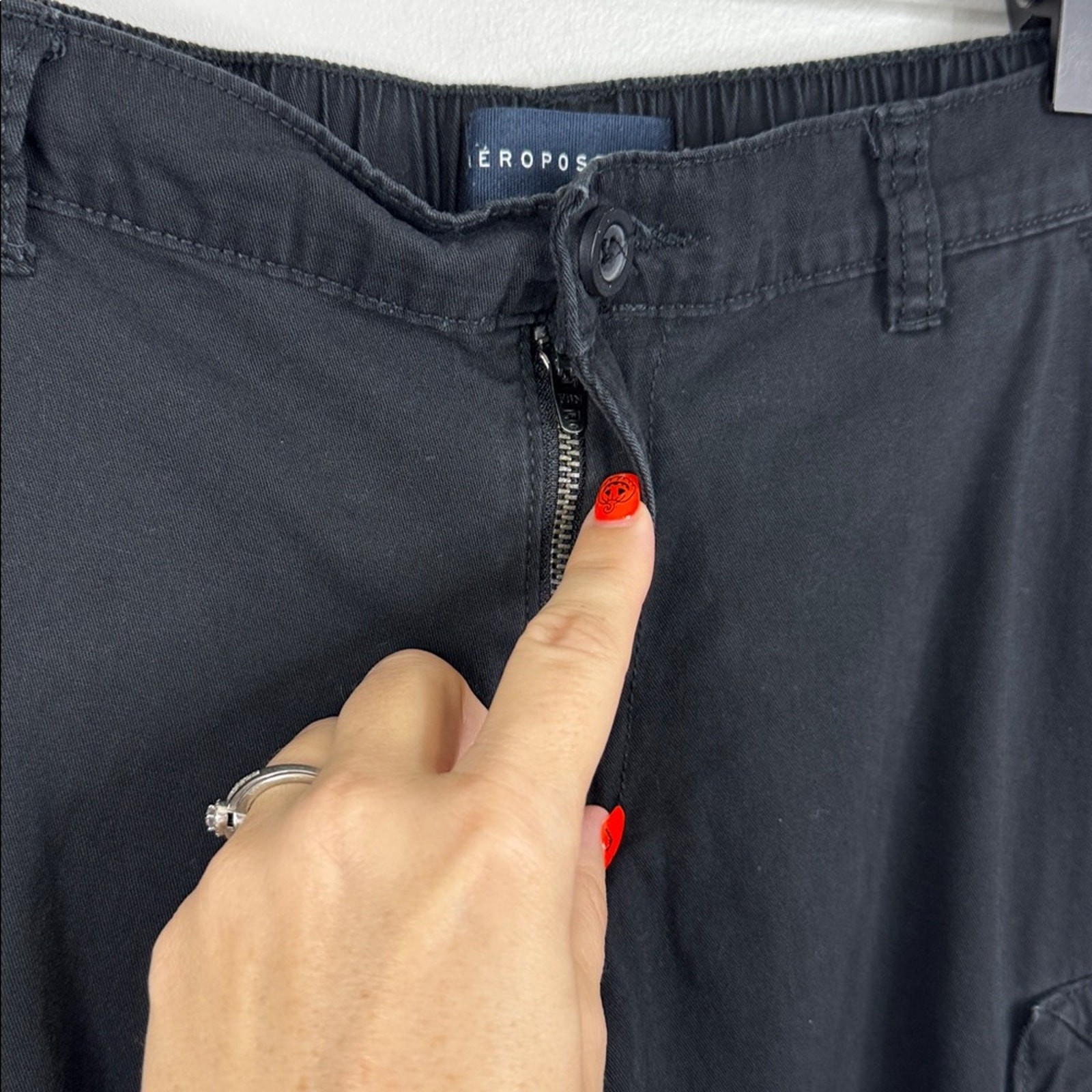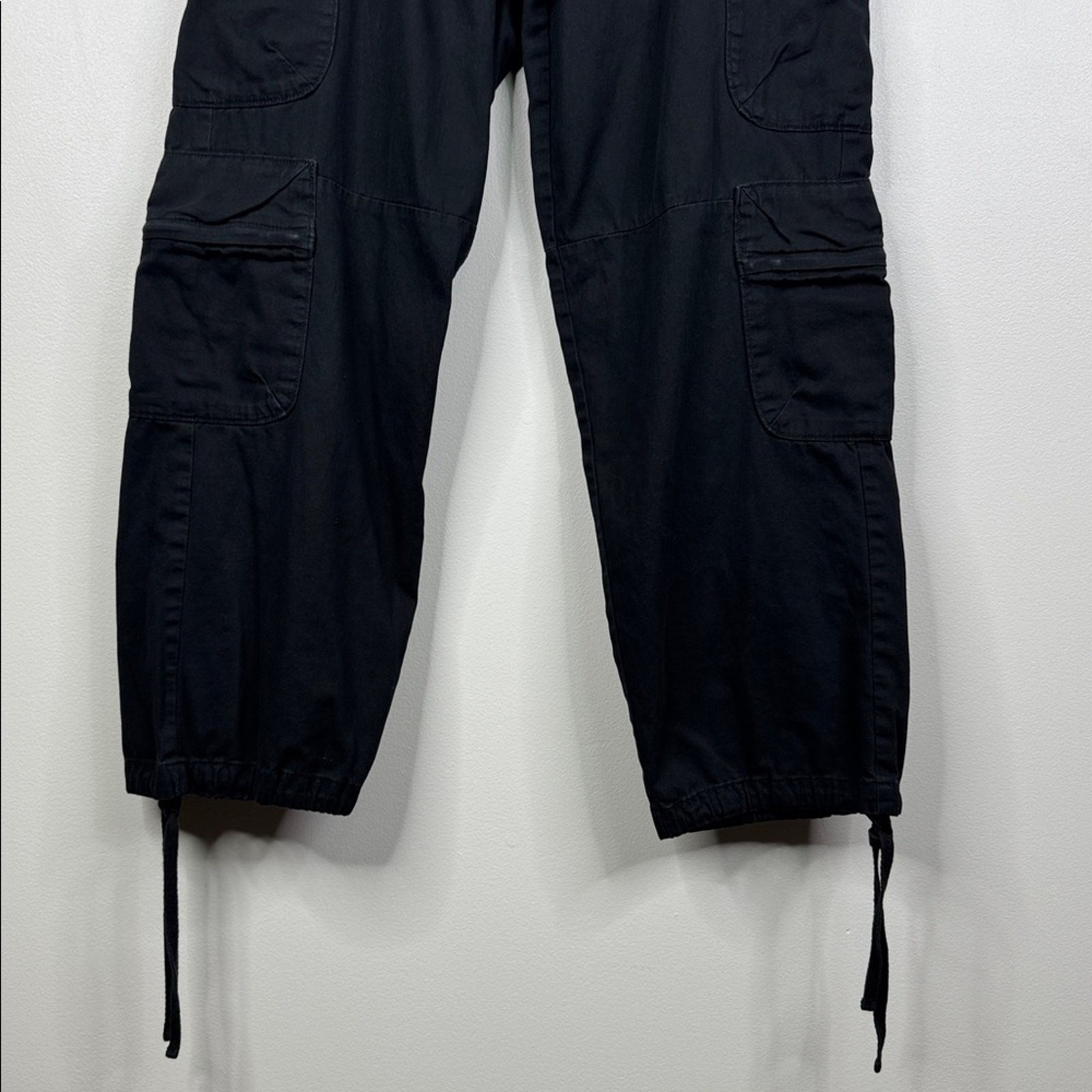 Nail the ultimate Y2K street-style aesthetic with these Aeropostale low-rise cargo pants. Featuring a classic black colorway and the iconic multi-pocket utility design, these pants offer a perfect blend of retro vibes and modern comfort. Trendy Y2K Silhouette: Designed with a low-rise waist and a relaxed, baggy fit that defines the early 2000s look. Functional Utility: Equipped with multiple spacious cargo pockets on the sides and front for an authentic utility/gorpcore vibe. Versatile Style: The solid black color makes these easy to pair with oversized graphic tees, baby tees, or hoodies. Comfortable Fit: Crafted from durable fabric (likely 100% cotton) with a secure zip and button closure. Measurements are approximate: Waist 14” Rise 10” Inseam 28.5” Great pre-owned condition We ship quickly from a smoke-free, pet-free home. We love to offer great deals -send us your offer. Bin 3-97