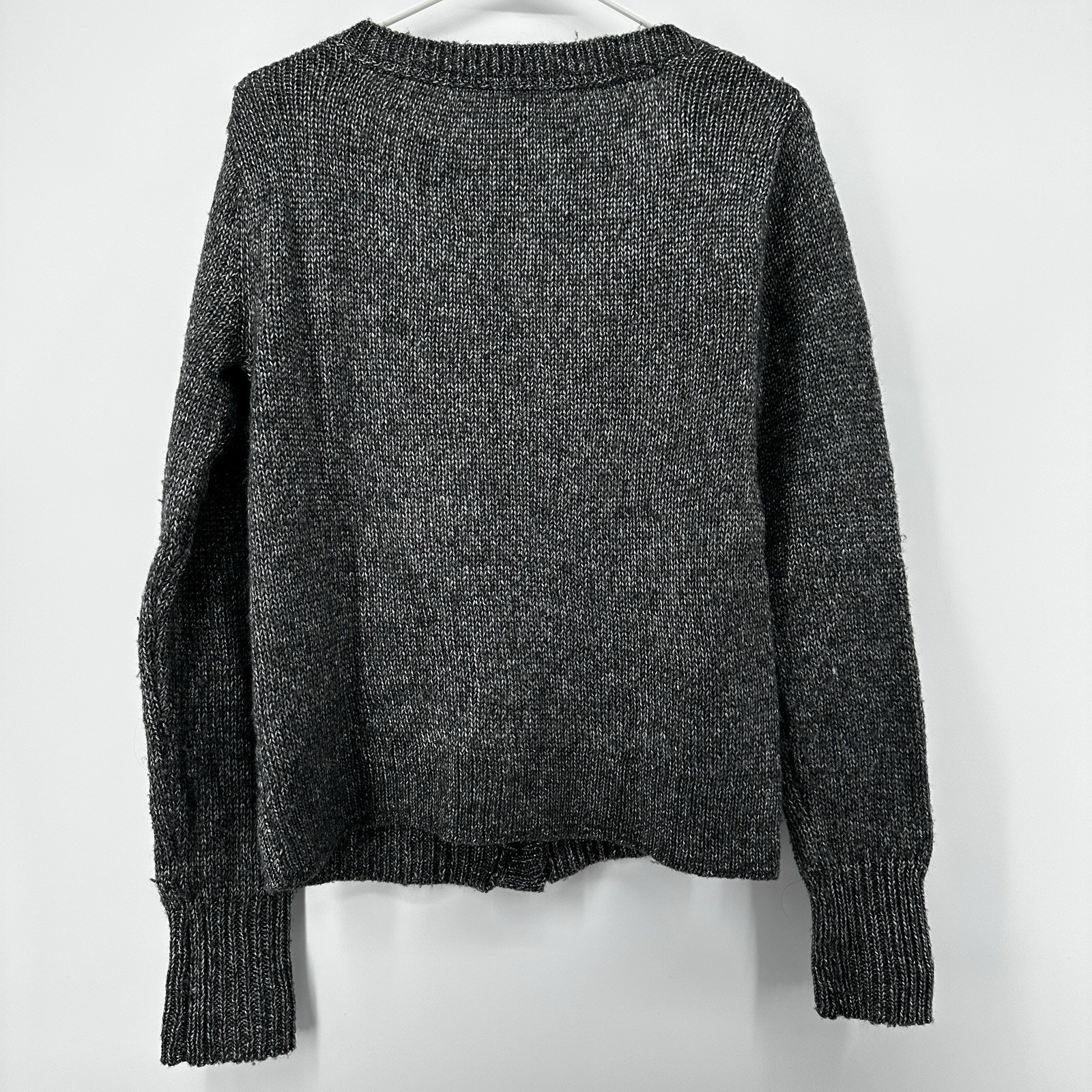 The Aeropostale Dark Grey Cable Knit Button Down Long Sleeve Cardigan is a stylish and versatile piece for women in size Large. Made from a blend of cotton, cotton blend, and acrylic, this sweater features a classic V-neck and button accents. The cable-knit design and cropped style add a touch of texture and sophistication, making it perfect for the winter, fall, and spring seasons. This cardigan from Aéropostale is a must-have for any wardrobe, offering both comfort and fashion in a timeless grey color.