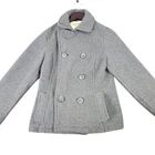 Classic gray peacoat in excellent condition. Double-breasted front with large buttons. Features a unique blue striped interior lining, front pockets, and collar design. Wool blend material provides warmth and durability. Clean and ready to wear. Type: Coat Outer Shell Material: Wool Blend Style: Pea Coat Department: Women Color: Gray Lining Material: Polyester Accents: Button Features: Double-Breasted, Front Pockets, Collared, Striped Interior Lining, Wool Blend Insulation Material: Wool Fabric Type: Twill Pattern: Solid Jacket/Coat Length: Mid-Length Keywords: double breasted, peacoat, wool blend, winter coat, striped lining, gray coat, button front, collared, aeropostale, medium all items have been cleaned and disinfected we stand behind all we sell so please contact us if you have an issue with any order