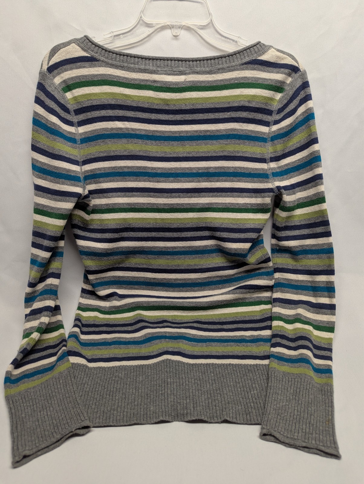 The Aeropostale Striped V Neck Sweater is a stylish and versatile piece perfect for the fashion-forward woman. This sweater features a classic V-neck design with long sleeves, making it suitable for various occasions from casual outings to workwear. The tight-knit fabric of cotton and acrylic ensures durability and warmth, while the multicolor striped pattern adds a fun and vibrant touch. With a preppy yet trendy style, this sweater is a must-have for the modern woman looking to add a touch of hipster charm to her wardrobe.