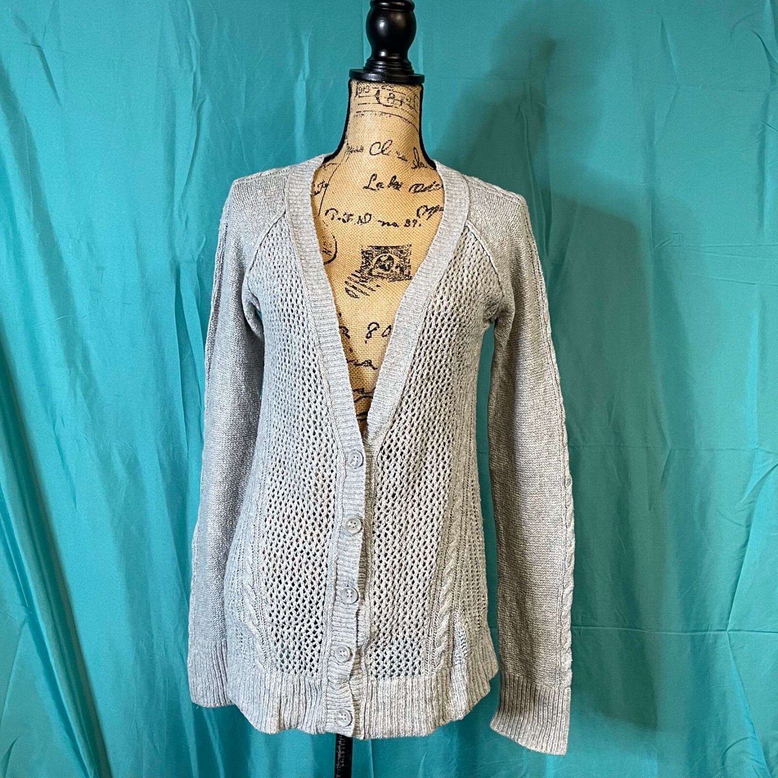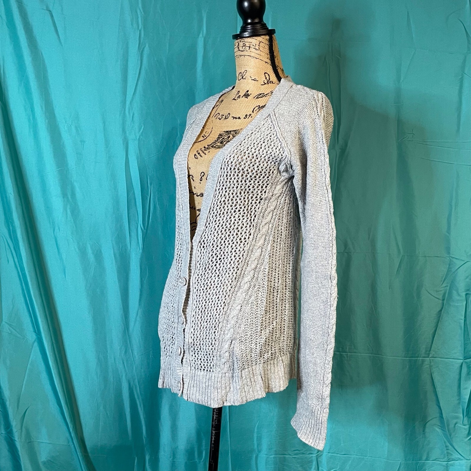 HomeAeropostale Womens Sweater Gray Medium Open Knit Cardigan Button Long Sleeve