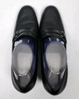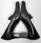These Aerosoles black heeled leather slip-on loafers feature a round toe shape, mid heel height, and a buckle accent for added style. These versatile shoes are suitable for casual, work, or business occasions, making them a great addition to any wardrobe. The leather upper and synthetic insole ensure comfort and durability, while the rubber outsole provides added traction. In a classic black color with a solid pattern, these heeled loafers from Aerosoles are a stylish and practical choice for any season.