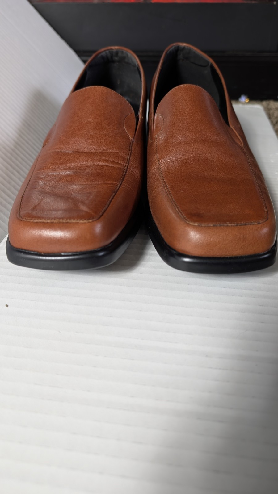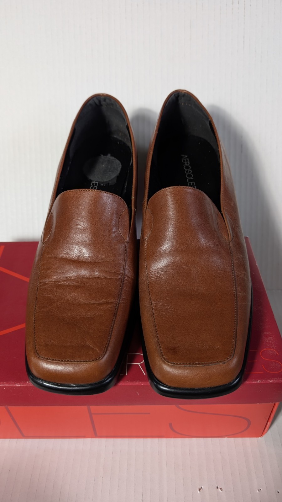 Classic, comfortable, and timeless — these Aerosoles “Final Exam” loafers are a wardrobe staple for work or everyday wear. Details: Brand: Aerosoles Style: Final Exam Women’s Size: 10B (medium width) Color: Brown / Luggage leather Upper: Genuine leather Sole: Synthetic Made in Ukraine Slip-on loafer style with low block heel Cushioned insole for comfort and support Condition: Pre-owned, very good condition. Light natural creasing to leather from normal wear. Soles show minimal wear (see photos). Clean interiors. Original box included. Perfect for office, business casual, travel, or everyday comfort wear. Ships carefully packaged. Please review all photos for exact condition and feel free to ask questions before purchasing. Old Money, Academia, Prep school.