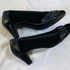 Aerosoles Heelrest Women's Size 8.5M Black Pumps. Slip On Shoes with Chain Link Design and 2.5” Heels. Fabric upper with a velvety finish, man made balance. In excellent pre-owned condition, some scuffs on edges of heels as is to be expected, no stains/odors or other flaws noted, they're clean and in great shape. Please see all pictures for exact cosmetic condition and other details, as they are part of the description as well, and ask any questions before purchasing. We are a husband and wife team with a growing family, and greatly appreciate your support of our small business. Please browse our eBay store for a variety of other women's shoes. We hope you enjoy these!