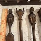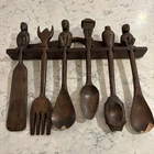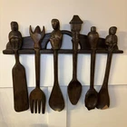 set of 6 vintage carved utensils with hanger. There is some damage on two of the utensils so please look at photos carefully