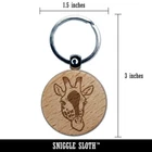 African Giraffe Head Engraved Wood Round Keychain Tag Charm