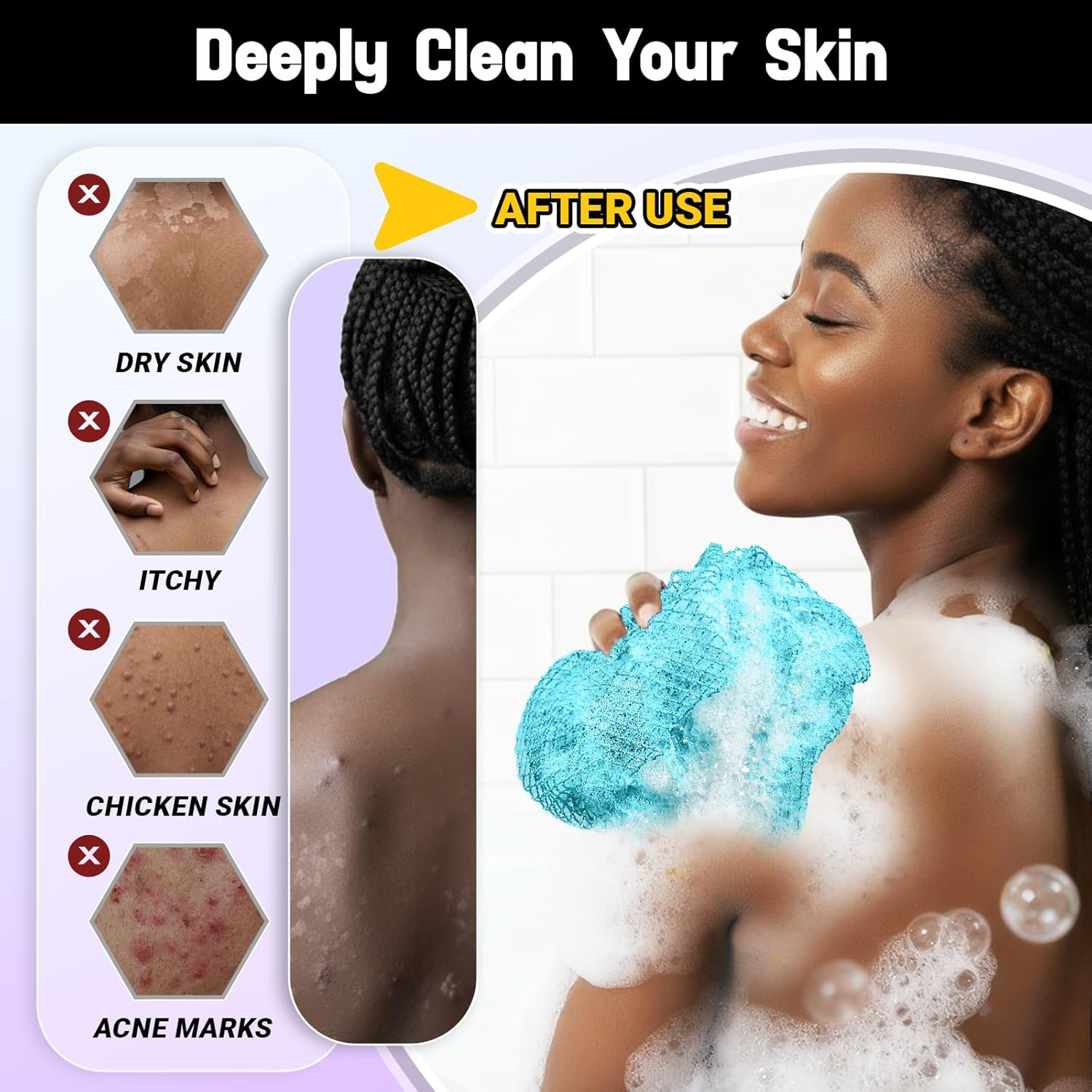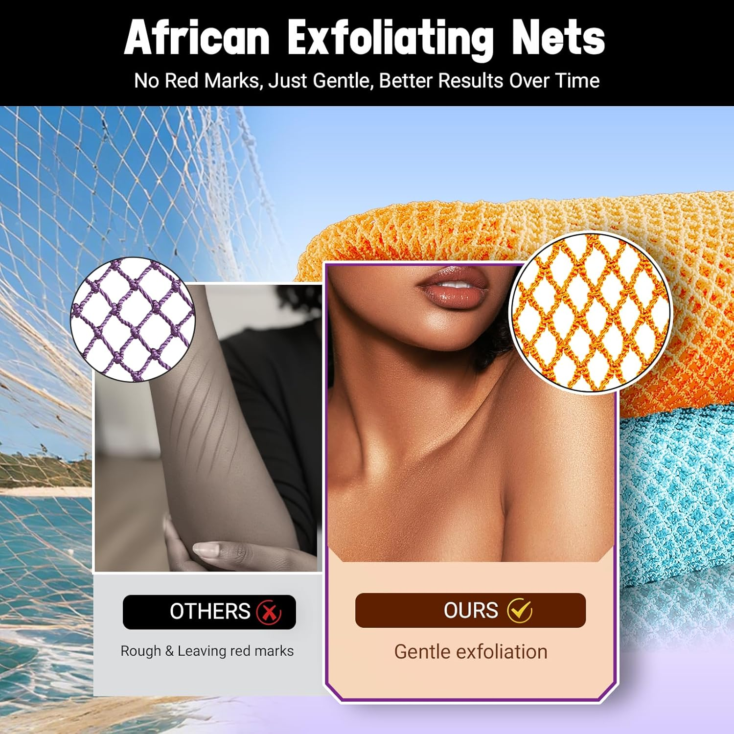 Store New Arrivals Add to Favorite View Feedback Contact African Net Sponge Authentic 2 Pieces Gentle Exfoliating Body Scrubber Bath Sponges for All Skin Types, African Exfoliating Net Sponge with Handles Washcloth Loofah Bathing Accessories for Shower Description Item model number africannetsponge05 Package Dimensions 10.04 x 7.48 x 0.67 inches; 8.15 ounces Deeper Cleansing, Softer Texture: Our authentic African net sponges feature an upgraded diamond-shaped net design, woven and hand-cut by artisans. Each African net sponge is hand-cut by artisans. Slight size variations are normal. This increases the elasticity and softness of the nets while reducing the roughness of the knot areas. These resilient nets produce a richer lather and a softer feel, providing effective and gentle exfoliation. It is suitable for all skin types, even sensitive skin. Extra-long Reach, Good Resilience: The average length of the african exfoliating net sponge is 43 inches (it will be longer when stretched) and is flexible enough to reach every part of the body without losing its shape. The rope design at both ends of the african net stretches to easily scrub legs, and the hard-to-reach back, or use as bath sponge balls for focused scrubbing. Quick-Drying & Reusable: After bath sponges for shower, rinse them thoroughly and hang them to dry. The mesh design provides rapid drainage and drying, making it dry faster than traditional loofahs and towels. With proper care, it could be used for a long time. Easy to Use: This African exfoliating net is designed for effortless use. Only wet the sponge, then apply your favorite soap or body wash to create a rich lather. It gently removes dead skin, transforming your shower into a home spa experience that relieves stress and fatigue. With regular use, your skin will become smoother and more refined, radiating a natural glow. Vibrant Color Design & Gift Packaging: We offer a variety of color sets to suit the needs of you, your family, or your friends. Regardless of age or gender, our exfoliating body scrubber are suitable for everyone. The exquisite gift box packaging is exclusively designed by RTINROU, making it the perfect choice for both personal use and gifting! Product description ABOUT US We offer the best prices around on high quality products. Our E-store includes media such as books, movies, music and games while offering electronics, toys, sporting apparel, clothing, tools, general home, garden items and more. SHIPPING We are always working hard to ensure your package arrives as soon as possible. Please understand that some factors like weather, high postal traffic, and the performance of shipping companies are outside of our control. We offer free shipping to the lower 48 states and ship within 2 business days of payment, usually sooner. We do not accept P.O. Boxes. Please provide a physical address. For shipping outside of the continental USA, we only use eBay's Global Shipping Program.The item is shipped to KY and then sent to the rest of the world. International customers are responsible for all duties and taxes. Continue to check out in order to calculate costs for shipping the item to your country. Messages regarding eBay's Global Shipping Program MUST be directed at eBay EXCLUSIVELY. RETURNS We offer a 30-Day Return Policy on items which you are not completely satisfied with. You have the option for a full-refund or an exchange of the item. No returns are available on items shipped outside of the USA. PAYMENT We accept PayPal. CONTACT US This page content is yet to come Please ad us to your favorite seller and visit again later Thank You CUSTOMER SATISFACTION We try our very best to make sure every customer is completely satisfied. If there's a problem, message us! We're happy to help. WE ACCEPT Copyright © 2021 AutoDS. | All Rights Reserved