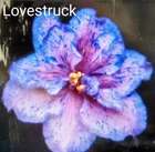 LOVESTRUCK (10595) 3/08/2013 (P. Sorano/Lyndon Lyon Greenhouses) Single semi-double hot pink frilled large star/blue-fantasied lighter band, purple edge. Dark green, quilted. STANDARD I am a collector and hobby grower of African Violets. All plants are grown from leaves of my own plants using the best soil and additives. You are purchasing a LEAF POT which is a newly sprouted or very early propagated plant in a 2oz or 3oz cup. I have started the plant for you from a leaf under MY growing conditions. Your conditions will probably differ from mine. The tiny plant needs time to mature. No repotting, the plant will not survive. Very, very light moisture. If you are new to growing violets, I strongly urge you to find information on your specific variety from the AVSA website or from hundreds of videos available. The plant you will receive is the one in the picture (in the cup). When available, I will include a picture of my stock plant in bloom to give a better idea of bloom and leaf size, shape and color. This is NOT the plant you receive. The Leaf Pots are not in bud or in bloom. SHIPPING : Shipping is a flat fee of $12.00. All plants are shipped via USPS Priority Mail, using fiberglass insulation. ***** It is YOUR responsibility to monitor your weather. Need me to hold an order for a few days? Send a message. My plants are very carefully packed for shipping. Occasionally, there may be spilled soil or a broken leaf. Broken leaf? Snip the very edge of the stem and put it back in the soil. You will have a new plant in no time! This is not considered damage. If you receive a box that has been damaged during shipment, please message me with pictures UPON RECEIPT. Most issues can be resolved through good communication. Shipping is to the US only. Your tracking number indicates your delivery date. You will also receive emails updating the exact delivery date. You are responsible to ensure the box does not sit out in hot or cold temperatures. The plants will cook or freeze in extreme temperatures. This "damage" is your responsibility and is not refundable. Feel free to message me with any questions prior to purchase. Responses to inquiries are usually within one day. I am happy to share violet chat! THANK YOU AND ENJOY GROWING YOUR PLANTS!