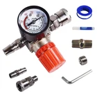 Air compressor pressure regulator with dial indicator, Four way valve : maximum voltage: 240 V; Maximum current: 15A; Maximum pressure: 175 PSI, 12 BAR. Materials and characteristics: plastic, alloy and copper. Easy to install and remove, with thread locking agent, better sealing Four way valve : maximum voltage: 240 V; Maximum current: 15A; Maximum pressure: 175 PSI, 12 BAR The data can be set and read using the barometer. With valve knob, you can adjust the atmospheric pressure as required. In use, it can help save electricity The air compressor pressure regulator is used to connect the air compressor or air pipe, regulate the air pressure Our air compressor regulator has a high cost performance ratio and is a pneumatic tool worth choosing for daily use of air compressors