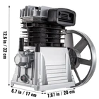 Document Product Description Features & Details 【STURDY ALUMINUM STRUCTURE】 - The cylinder of our single stage air compressor pump, with the cast cylinder liner, features boron cast iron material. Its shell is of heavy aluminum structure, durable and easy to maintain. Capacity: 375 L/MIN or 12 CFM, Lubrication method: oil lubricated air compressor, Fast heat dissipation design: Large heat sink design. 【DOUBLE-CYLINDER DESIGN】- The air compressor pump, which adopts two cast-iron cylinders and a cylinder head with die-casting technology, has a strong heat dissipation function, and it operates stably and quietly. 【SMOOTH OPERATION】- Thanks to the high-quality crankshaft connecting rod of the piston machine and proven belt pulley drive design, this 3hp compressor pump is built with strong wear resistance, good compression performance, and smooth operation. 【SCIENTIFIC DESIGN】- With tapered roller bearing, needle bearing piston ring, and control elements, our 3hp compressor has high bearing capacity. There is also an oil viewing window to observe the oil quantity in real-time. It is convenient for refueling. 【WIDE APPLICATION】- This 12cfm twin cylinder compressor pump is a high-quality 2 cylinder single-stage pump suitable for use with 3hp electric motors and 6.5hp petrol motors. It is ideal for interior decoration, the power source of pneumatic equipment, repair and maintenance of equipment, and other industries. Key Features Durable Aluminum Material With the cast-iron cylinders and a heavy aluminum body, this 3hp air compressor pump has strong thermal conductivity and is suitable for the dusty field environment. Double Cast Iron Cylinders The conjoined twin-cylinder, with small vibration, low sound, and strong heat dissipation function, runs vertically. Its simple structure is easy to maintain. Belt Pulley Design The strength and wear resistance of materials are improved through heat treatment. Coupled with the belt pulley drive design, our air compressor pump has excellent compression function and can operate stably. Excellent Components Our single stage air compressor pump comprises tapered roller bearing, needle roller bearing piston ring, control elements with the extremely high bearing capacity, and the aluminum head and valve plate for heat dissipation. Oil Viewing Window This air compressor is designed with an oil viewing window and an oil drain plug. You can monitor the machine's oil quantity in real-time. It is convenient and intuitive to observe. Versatile Use Our air compressor is capable of replacing defective equipment or extending the existing compressed air system. It is widely used in chemical, electronic, textile, food processing, and other compressed air industries. 2.2KW Air Compressor Heads With an aluminum shell, our air compressor head is characteristic with cast cylinder sleeves and an excellent heat dissipation system. The air compressor cylinder is designed for long time use, and it's easy for maintenance. Due to the oil viewing window and the belt-driven design, this 3hp compressor pump is ideal for replacing a defective unit or expanding an existing compressed air system, suitable for farming, industrial & mechanical use. Sturdy Structure Double-Cylinder Design Scientific Design Wide Application Specifications Type: Piston Compressor Power: 2.2 kw Cylinder: 2 Cylinder Stages: Single Stage Capacity: 375 L/MIN / 12 CFM Sound Pressure Level LWA: 55 dB Pressure Max.: 11 bar / 159.5 psi Max. Rotation: 1300 rpm Dimensions (L x M x H): 7.87" x 6.7" x 12.6" / 20 x 17 x 32 cm Net Weight: 13.9 kg / 30.6 lbs Lubrication Method: Oil Lubricated Air Compressor Fast Heat Dissipation Design: Large Heat Sink Design Package Content 1 x Air Compressor Head People Who Bought This Item Also Bought VEVOR 1HP Oil Free Air Compressor 115 PSI w/6.6 Gallon Steel Tank Ultra Quiet VEVOR Air Compressor 6.3 Gallon 1450W 3.35 CFM@ 90PSI 70 dB Ultra Quiet Oil Free VEVOR Air Compressor 4.8 Gallon 900W 2.2 CFM@ 90PSI 70 dB Ultra Quiet Oil Free VEVOR Air Compressor 2.1 Gallon 900W 2.2 CFM@ 90PSI 70 dB Ultra Quiet Oil Free VEVOR Oil Free Air Compressor Tank 15.8 Gallon 750W 165 L/min 115Psi Ultra Quiet VEVOR PCP Air Compressor 30Mpa/4500Psi Auto-Stop High Pressure Pump 12/110/220V VEVOR 1HP Oil Free Air Compressor 115 PSI w/6.6 Gallon Steel Tank Ultra Quiet VEVOR Air Compressor 6.3 Gallon 1450W 3.35 CFM@ 90PSI 70 dB Ultra Quiet Oil Free VEVOR 110V PCP Air Compressor 30Mpa/4500Psi Auto-Stop High Pressure Air Pump VEVOR Oil Free Air Compressor Tank 15.8 Gallon 750W 165 L/min 115Psi Ultra Quiet VEVOR Air Compressor 4.8 Gallon 900W 2.2 CFM@ 90PSI 70 dB Ultra Quiet Oil Free VEVOR Air Compressor 2.1 Gallon 900W 2.2 CFM@ 90PSI 70 dB Ultra Quiet Oil Free SHIPPING ABOUT US PAYMENT RETURNS CONTACT WARRANTY Welcome to our eBay store. As a leading and emerging company in manufacturer and exporting business, we are specialized in Business and Industrial Products, Sporting Goods, Pet Products, Home and Garden products for more than 10 years. We believe that it is our vision and mission to provide innovative products with best service and competitive price to satisfy you. Our goal is to make sure that you can find exactly what you are looking for and make it easy for you to place your orders. We accept PayPal payment,PayPal Credit,Credit card or debit card and so on. Payment should be completed within 4 (Four) days of auction closing. Or unpaid dispute will be filed for closing auction. We will leave a positive feedback immediately after payment is received. We appreciate a positive feedback as much as you do. If for some reason there is any issue with the purchase, please contact us prior to leaving feedback, we will be glad to work together and provide a satisfying solution. Please be aware that PO Box cannot receive items, please DO NOT fill in the PO Box address. DELIVERY DAYS: 3-7 BUSINESS DAYS 3 BUSINESS DAYS SHIPPING OUT SHIP FROM CA & TX & NJ & GA & NC &OR WAREHOUSE California Warehous