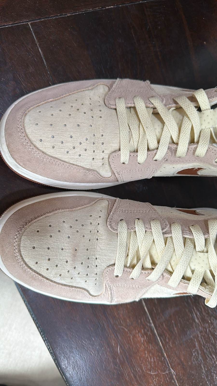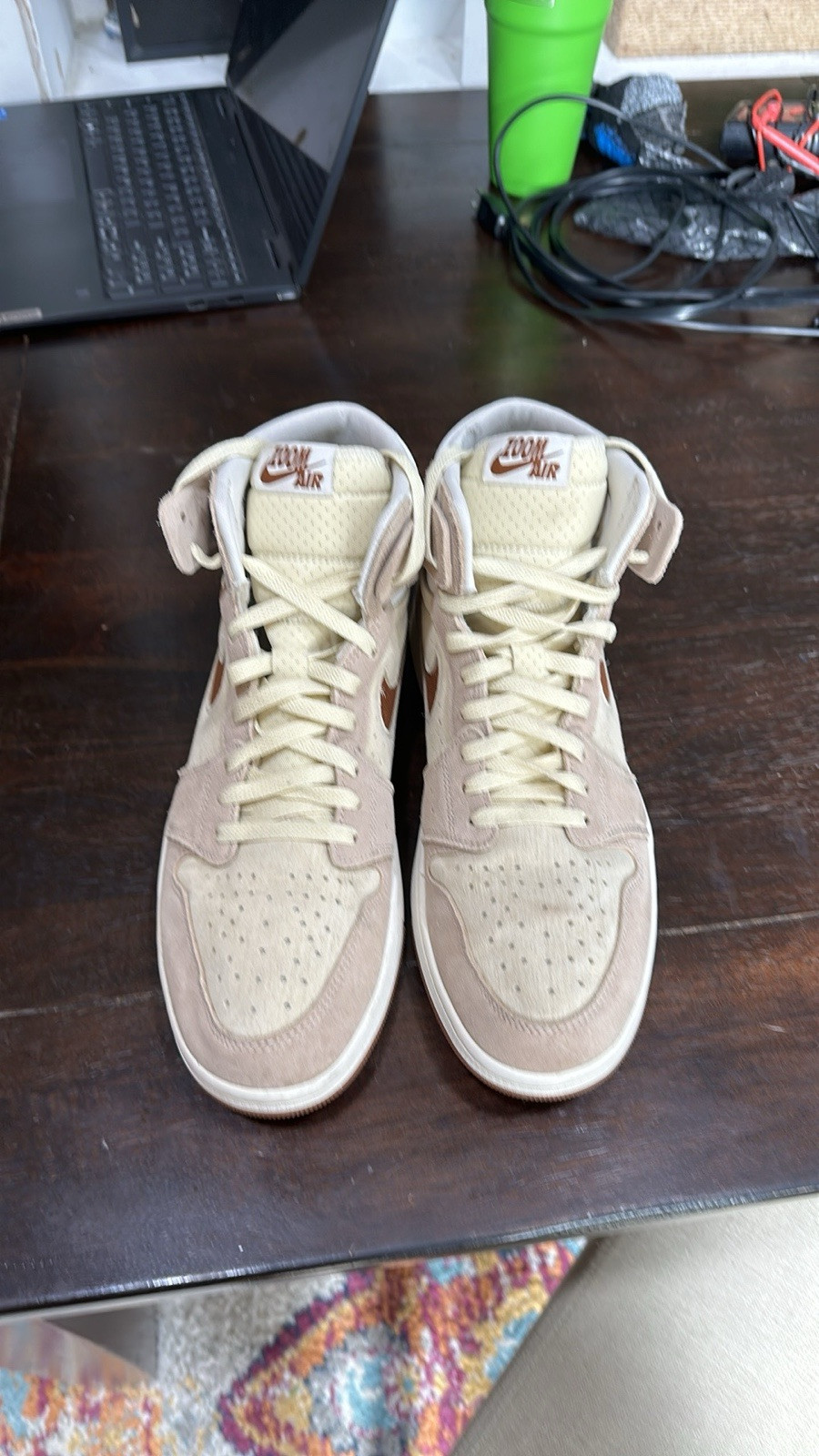 There is a few smudges but barely worn Step into iconic style with the Air Jordan 1 High Zoom Comfort 2 in the Legend Coffee colorway, a must-have for sneaker enthusiasts and collectors alike. The high-top silhouette pairs a crisp white suede upper with the distinctive Legend Coffee and Legend Medium Brown accents, providing a sophisticated yet bold look that's sure to turn heads. Designed for men's US shoe size 11, these sneakers feature the respected Air Jordan product line's heritage and quality. The style code DV1307-120 confirms their authenticity as a recent release, ensuring you step out in a pair that blends classic design with modern comfort.