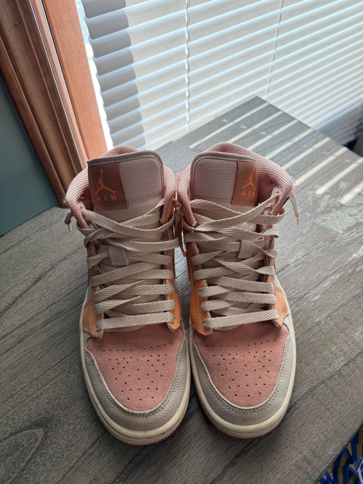 Got these Air Jordan 1 Mids in Apricot and they’re fire! Lightly worn indoors—look & feel brand new. Super comfy, great fit, and the color pops. Perfect condition, no flaws. Love the clean look for casual or streetwear. Would 100% recommend for any sneakerhead looking for a fresh pair!