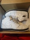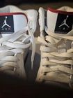 Step into a blend of classic style and modern comfort with the Air Jordan Fusion sneakers. These high-top athletic shoes feature a crisp white color that serves as a perfect canvas for the iconic red and green Jordan logo and stitching, giving them a vibrant and timeless look. Crafted with premium leather uppers and designed to meet the needs of men's US size 11.5 (UK 10.5, EU same), these sneakers offer both durability and a comfortable fit. The standard shoe width ensures a snug and secure feel, while the distinctive design elements make these kicks a standout addition to any collection.