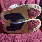 The Air Jordan 3 Retro International Flight Sneaker in size 10.5 features a Royal-Fire Red colorway with a lace-up closure and mid-top silhouette. This 2018 release provides comfort and breathability, making it suitable for casual occasions throughout all seasons. Made with a leather upper and rubber outsole, this sneaker is designed for athletic activities, specifically basketball. The Air Jordan 3 Retro model offers a solid pattern with a royal theme, representing the iconic Jordan brand.