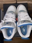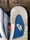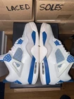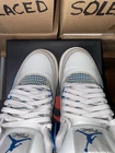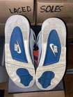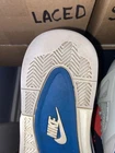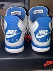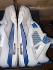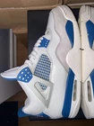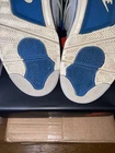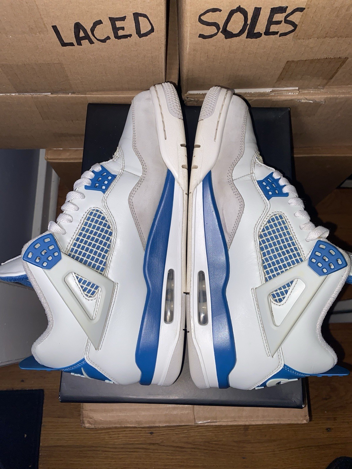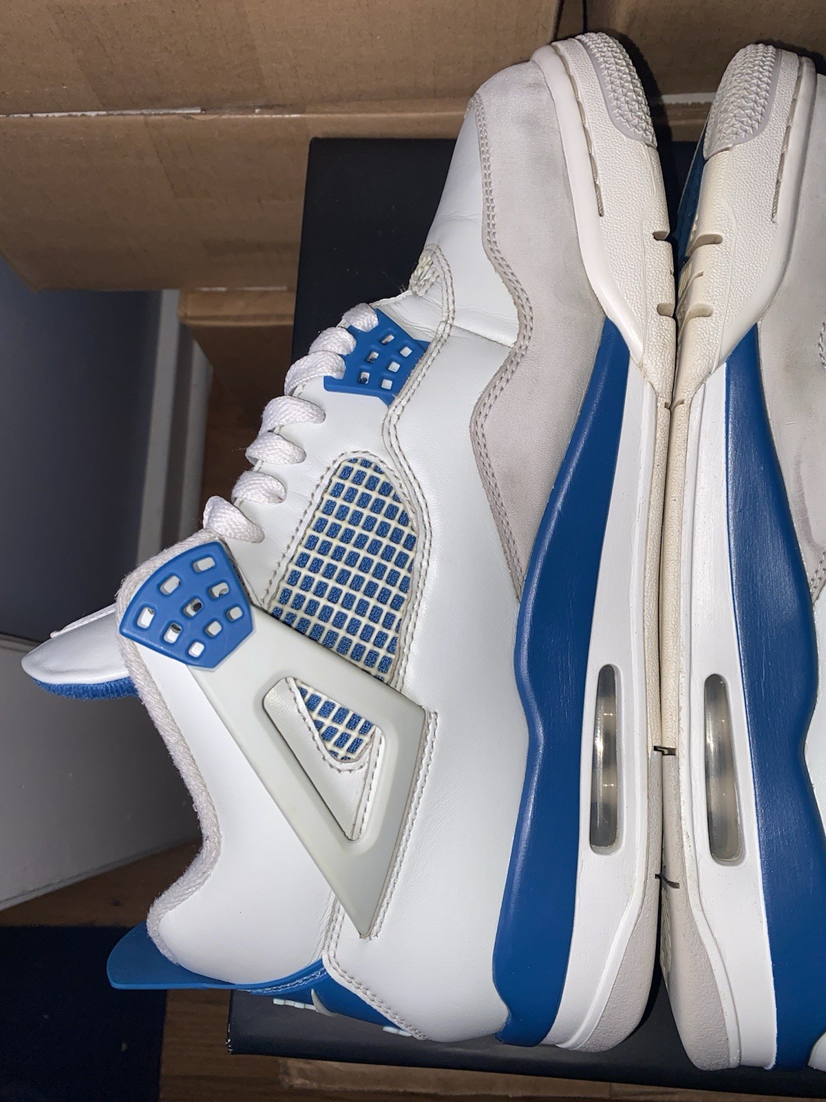 Air Jordan 4 military blue 2024 size 11 Comes with original everything including size stickers that go inside each shoe. Star loss, creasing, yellow net for that old look, some marks on the nubuck, slight heel drag still look great on feet overall!
