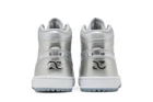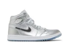 The Air Jordan 1 High Golf ‘Gift Giving Pack’ outfits the iconic silhouette in a metallic silver leather upper. Chrome accents shine on the signature Swoosh, Jumpman tongue tag, and the stylized ‘23’ stamped on the back heel. A debossed Wings logo on the lateral collar flap delivers an OG touch. The high-top rests on a white rubber midsole with encapsulated Air-sole cushioning in the heel. Inspired by the original AJ1, the blue-tinted translucent rubber outsole features an integrated traction pattern for optimal grip.