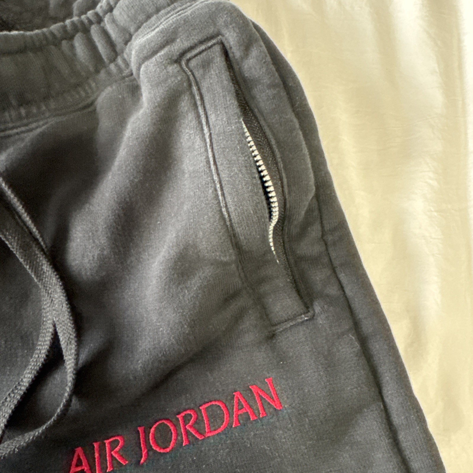 These are thick, warm sweatpants. The Air Jordan Fleece Sweatpants in Women's size X-Small are a stylish and comfortable option for activewear or casual wear. These black sweatpants feature a drawstring closure and elastic waist for a personalized fit. Made of fleece fabric, they are perfect for all seasons and offer a tapered leg style for a modern look. The Air Jordan character adds a sporty touch, while the features like adjustable waist and comfort make them a versatile choice for various activities such as gym training, walking, or basketball. Machine washable for easy care, these sweatpants are a must-have addition to any athletic wardrobe. Pet free smoke free home
