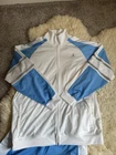 Air Jordan Jumpman North Carolina Michael Jordan Tar Heels Blue White Basketball Track Suit Jacket Pants Excellent condition Size XL Snap hip and rear pockets Zip and drawstring ankle cuffs Full zip jacket with raglan sleeves and snap hip pockets Baby blue and white North Carolina colors