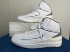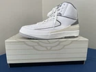 The Air Jordan Retro 2 in White/Cement Grey-Sail-Black, size 9, is a classic sneaker designed for men. Featuring a leather upper material, this athletic shoe belongs to the Air Jordan product line and bears the iconic nickname "White Cement." With a color scheme of white, grey, and black, this model (DR8884-100) offers a stylish and versatile option for sneaker enthusiasts looking for a timeless and well-crafted footwear choice. Like New - Shoes & Box In Excellent Condition.