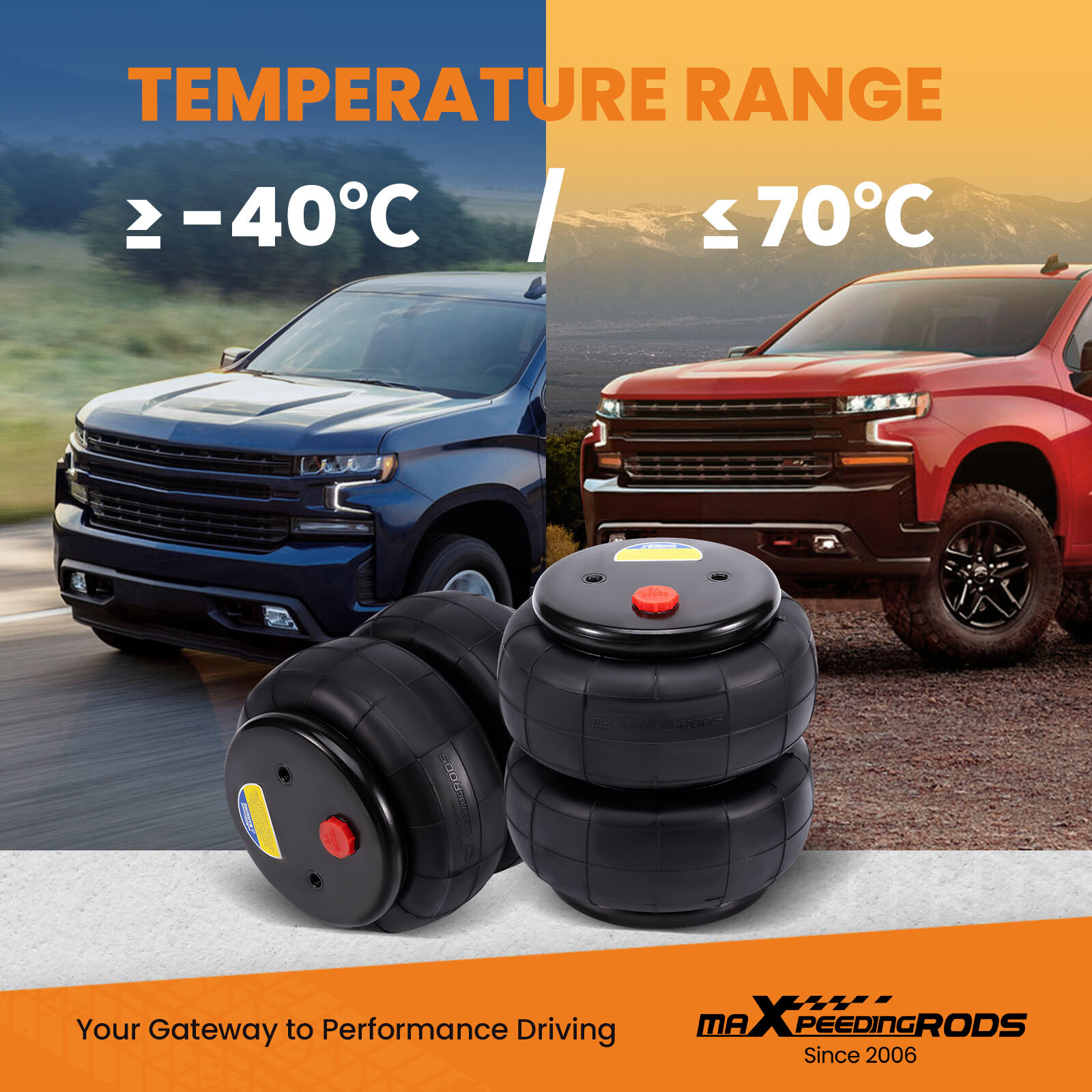 YRMAP Air Tow Assist Rear Bag Kit for GMC Sierra for Chevy Silverado 1500 1999-2006 Air Suspension Bags Kit maXpeedingrods Air Suspension Bags Kit Fitment for Chevrolet Silverado 1500 1999-2006 2WD &4WD for GMC Sierra 1500 1999-2006 2WD &4WD (Will Not Fit Trucks With Rear Sway Bar) Package Includes 2 x Standard 2500lbs Air Spring Bags 2 x Upper Bracket Mounts 2 x Lower Mounts Top Of Axle 2 x Under Axle Brackets Mounting Brackets Hardware Air Line With Fittings And Valve Features 1、Stress Test Over 5,000,000 Times:Durable and Safe 2、Burst Pressure≥2.0MPa:High Compressive Strength and Less Noise 3、24 Hours Air Tightness Test ≤ 0.02MPa:100% Air Tightness Guarantee 4、Temperature Range ≥ -40℃/ ≤ 70℃:Premium Natural Rubber Material 5、Use high-quality steel with high load-bearing capacity and long life. 6、Excellent and practical bolt-on installation. 7、Safe carrying capacity and stability 8、Restore the original ride height and improve ride quality 9、Ensure our driving comfort and reduce tire wear. Specifications Condition Brand New Internal Jounce Bumper include No Stroke 135 mm Placement on Vehicle Rear left and right Load capacity 2500LBS Material Cured Natural rubber maXpeedingrods Air Suspension Bags Kit Solves These Common Problems Other items you might also like Air Suspension Spring Bag Kit For GMC Silverado Sierra 1500 4WD 2019-24 Rear Air Suspension Spring Bag Kit 5000lbs For Dodge Ram 2500 3500 2003-2018 4WD Air Suspension Spring Kit 5000 lbs For GMC Sierra Chevrolet Silverado 1500 99-07 2x Cab Air Suspension Spring Bags for Peterbilt 379 W02-358-7036 29-03200 Rear Air Helper Spring Leveling Kit For Ford F250 F350 Super Duty 2005-2010 Air Suspension Spring Kit 5000lbs For Dodge Ram 1500 4 Wheel Drive 2019-24 Air Suspension Spring Kit For GMC Sierra 1500 Chevrolet 1500 4WD 2019-2024 Rear Air Spring Leveling Kit for Ford F250 F350 Super Duty Pickup 4WD RWD 99-07 Pair Rear Air Ride Suspension Shock for Chevrolet GMC Cadillac Escalade 25979393 Air Spring Bag Tow Assist Rear 5000lbs For GMC Sierra Chevrolet 1500 2007-2018 Air Suspension Spring Bag Kit Rear For F250 F350 Super Duty 2WD 4WD 2011-2016 Air Suspension Bag Kit 7500 lbs For Ford F250 F350 F450 Super Duty 4WD 2017-22 Shipping Terms of Sales Payment Contact us All orders will be shipped within 1 business day after payment has been processed. For orders placed before 5:30 AM PST on business days, most items will be shipped out on the same day. All orders will be shipped with a tracking number via USPS, UPS, or FedEx Express and delivered within 2-6 business days We do not ship to P.O. Boxes, APO/FPO addresses, or Military Mail Boxes. Please ensure your address is confirmed by PayPal before checkout, as we only ship to confirmed addresses. 30-day free return and money back guarantee If you are not satisfied with your purchase, you can return the item with its original packaging to us for a full refund with no restocking fee. Please note that the return cost should be paid by the seller. One Year Unlimited Mileage Quality Guarantee If you receive incorrect items, items that are damaged during transportation, or defective items, we will accept returns and cover the return freight. Please note that the return cost should be prepaid by the buyer. After inspecting the faulty item, we will issue a refund of the return cost to the buyer. We offer a full refund or replacement for all faulty items, which includes the cost of original shipping. Please contact us before initiating a return. Our representatives will provide you with detailed instructions on how to proceed. Our guarantee covers only the cost of the item. We are not responsible for installation or other fees, such as labor, towing, additional repairs, or related expenses. We only accept payment through Paypal for all orders, which should be made through eBay. Paypal offers various payment methods, including credit card, direct debit, VISA, and others. For more information, please visit Paypal. Our customer service center is open 24 hours a day, seven days a week. If you have any questions, please don't hesitate to contact us. We are dedicated to providing excellent customer service and will do everything we can to ensure your satisfaction.