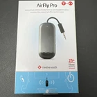 This is an AirFly Pro Bluetooth WiFi Audio Transmitter/Receiver made by Twelve South. It allows you to connect up to 2 AirPods or headphones and transmit audio wirelessly through Bluetooth connectivity. The device is designed to fit audio receivers and is perfect for use with computers, tablets, and other networking devices.