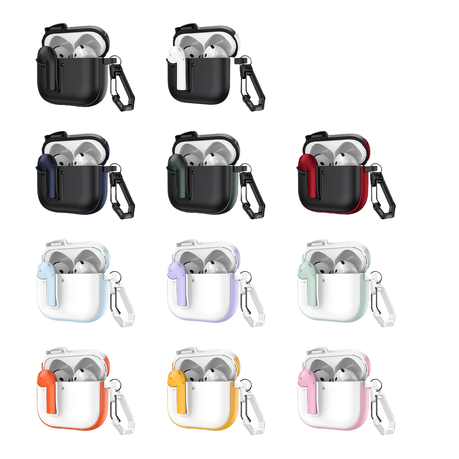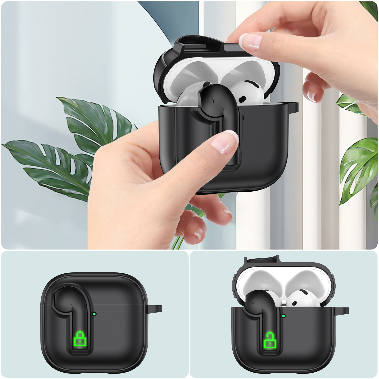 For Airpods Pro 2/1 Airpods 4/3/2/1 Portable Secure Lock Case Wireless Charging Key Features: Ultimate Protection – Durable shockproof design with reinforced edges keeps your AirPods safe from drops, scratches, and dust. Secure Lock & Waterproof – Locking mechanism prevents accidental opening, while water-resistant material guards against splashes. Wireless Charging – Built-in magnets support wireless charging without removing the case. Portable & Stylish – Sleek, ergonomic design with a sturdy carabiner for easy attachment to backpacks and belts. Precise Fit & Accessibility – Perfectly molded for AirPods, ensuring smooth access to charging port and pairing button.