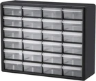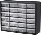 Plastic CABINET DIMENSIONS- 20-Inch x 6-3/8 Inch x 15-13/16 Inch, DRAWER DIMENSIONS- 6-Inch x 4-1/2-Inch x 2-3/16 Inch (large drawer) HIGH QUALITY- Rugged, high-impact polystyrene frame and 24 drawers GREAT FOR– Storing and organizing classroom or office supplies, crafts, bead organizer, art supply storage, or sewing supplies, hardware, lego and small toy storage, fishing gear and more STACK OR WALL MOUNT- Cabinets stack securely and can also be wall mounted using keyhole slots molded into the back of the cabinet DIVIDABLE DRAWERS- 4 drawer dividers included and come molded into the back of the cabinet, finger-grip drawer pulls provide easy access and rear stop tabs prevent contents from spilling