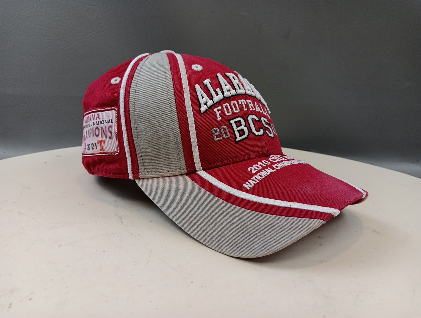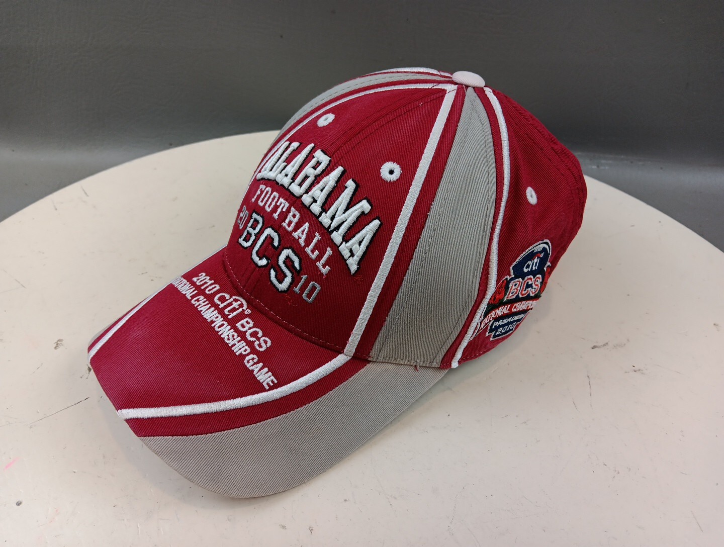 Show off your love for the Alabama Crimson Tide with this 2010 Rose Bowl Champion hat. The red cap features the team's iconic logo and is perfect for any unisex adult fan. Made from high-quality materials, this one size fits all cap is a must-have for any football enthusiast. Celebrate the team's BCS national champion status with this stylish and comfortable cap. Perfect for game day or everyday wear, this Alabama Football cap is a great addition to any fan's collection.