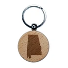 Alabama State Silhouette Engraved Wood Round Keychain Tag Charm