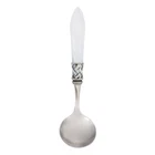 The elegance of mother-of-pearl, the strength of high-acrylic, 18/10 stainless steel plus intricate latticed metalwork on the handles, make Aladdin a classic flatware pattern. All pieces are available with pearlized handles in Yellow, Lime, Fuchsia, Sapphire Blue, Blue, Tangerine, Red, Brown, Chartreuse, Green, Tortoiseshell, Taupe, Ivory, , White and Clear. Lattice on handle is available in Brilliant and Antique (Please note that yellow, fuchsia, clear, and lime handles only are available with Brilliant lattice metalwork. Find your favorite color to complement your table setting. All Bugatti flatware may be cleaned in the diswasher on the low energy/air dry cycle with mild, non-abrasive detergent that does not contain chlorine, alcohol or perfume. We recommend that you wash your flatware in the basket with the handles up -8"L EXQUISITE DESIGN: The Aladdin Antique Sauce Ladle, in an alluring antique finish for a timeless, aged look, measures 8"L. This gravy spoon perfectly blends elegance and durability. ITALIAN ARTISANSHIP: Handcrafted in Italy by the Bugatti family, this 18/10 flatware epitomizes top-quality artisanship. Made of durable 18/10 Stainless Steel and acrylic, this small ladle for sauce is a testament to Italian expertise. silverware enriches your dining. DURABLE & FUNCTIONAL: This beautiful small gravy ladle also excels in functionality. With an 18/10 Stainless Steel composition, our gravy spoon ladle resists bending and corrosion, promising longevity and reliability. DISHWASHER SAFE CONVENIENCE: This small metal ladle promises hassle-free maintenance, being dishwasher safe. Now, enjoy the sophistication of this everyday silverware without worrying about tedious hand washing. SYMBOL OF ELEGANCE: Choosing flatware gravy ladle spoon means embracing 's legacy of elegance and quality. Each stainless ladle reflects our commitment to art and fine dining, making us a trusted brand for those who value sophistication.