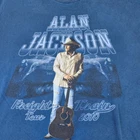 Authentic Alan Jackson Freight Train Tour merchandise from 2010. This classic concert t-shirt features a striking design with the country music star posed with his guitar against a musical backdrop. Perfect for country music enthusiasts, concert memorabilia collectors, or casual wear. The vintage-style graphic print maintains its vibrant appearance, making it a great conversation piece for country music gatherings or casual outings. Color: Blue Department: Men Type: T-Shirt Fit: Regular Sleeve Length: Short Sleeve Character: Alan Jackson, Country Singer, Country Music Star, Country Musician, Guitar Player Pattern: Graphic Print Character Family: Country Music, Alan Jackson, Nashville, American Country, Concert Tours Keywords: alan jackson, freight train tour, 2010 concert, country music, tour merchandise, concert tee, band shirt, music memorabilia, country western, tour tshirt, concert souvenir