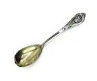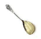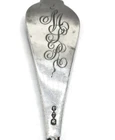 Albert Coles 1850s Medallion coin silver serving spoon with a scalloped, gold-washed bowl and twist handle. Clear marks on the back of handle. While many coin silver spoons of the era are lightweight, this one is solid, weighing just a hair under 2 troy ounces. Condition: Medallion is beautifully crisp and silver is in excellent condition. The gold wash is a bit worn on the back where the spoon rests on a surface. Elaborate script monogram on back. Dimensions: 8 1/2"L. Weight is 62 grams/1.99 troy ounces. All returns cheerfully accepted. See my other fabulous listings at https://www.ebay.com/str/mrsdarlingvintage