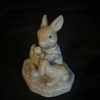 This Albert Kessler figurine features a cute bunny holding a puppy in its arms. The figurine is made of porcelain and ceramic, and it is hand-painted with a glossy finish. It measures 2.25 inches in length and 3 inches in height, and it weighs 4.2 ounces. The figurine is part of the Storytime collection by Albert Kessler, and it is an original piece from the 1980s. It is perfect for all occasions, and it can be displayed in any room. This collectible figurine is a great addition to any decor, and it is sure to bring a smile to anyone's face.
