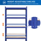 Are you looking for something to make your places neat and organized? This multiple tiers storage shelves are your ideal choices! The multiple shelves are made of sturdy steel and durable MDF boards. The storage shelves feature adjustable heights and dividable structures. You can change the structure according to your needs. Steel frame and durable boards will provide a long-term service life for you. The assembly is quite easy and no tools are required. You can use this set of storage shelves for storing books, flowerpots, luggage, goods, or anything you want to organize. Practical and durable, do not miss out! Smile Mart 5-Shelf Boltless & Adjustable Steel Storage Shelf Unit, Blue Color: Blue Material: Iron and MDF Boards Overall size: 35.5 x 12 x 71 inch (L x W x H) Max. Weight Capacity of Each Layer: 385.8 lb Note: 1. Please allow ± 0.5inch error due to manual measurement. 2. For safety, the product can not bear the maximum weight on each layer at the same time, especially the highest two layers. 3. To ensure stability, please do not place massive items on the upper layers. Please do not stand on the shelf. On Oct 25, 2024 at 03:28:19 PDT, seller added the following information: