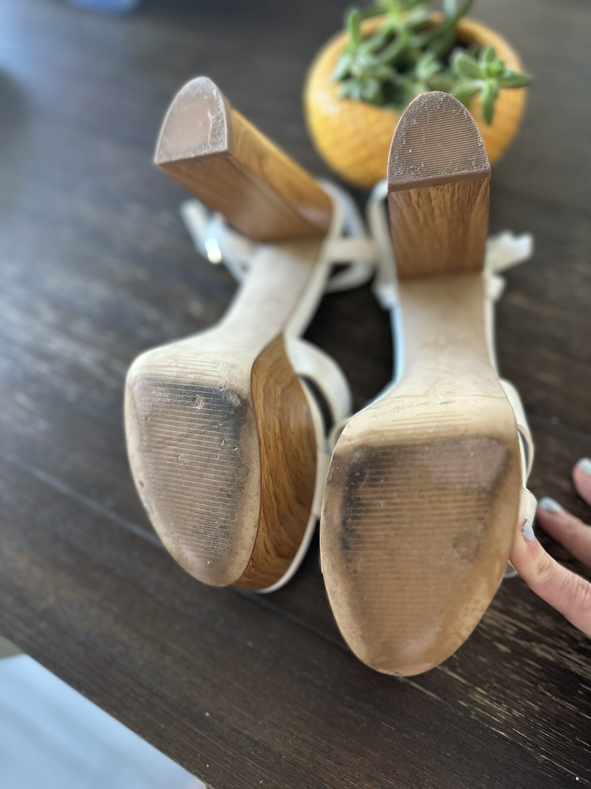 Aldo Chunky Heels in size 8 for women. These pumps feature a white leather upper, combining style and comfort for a trendy look. 028