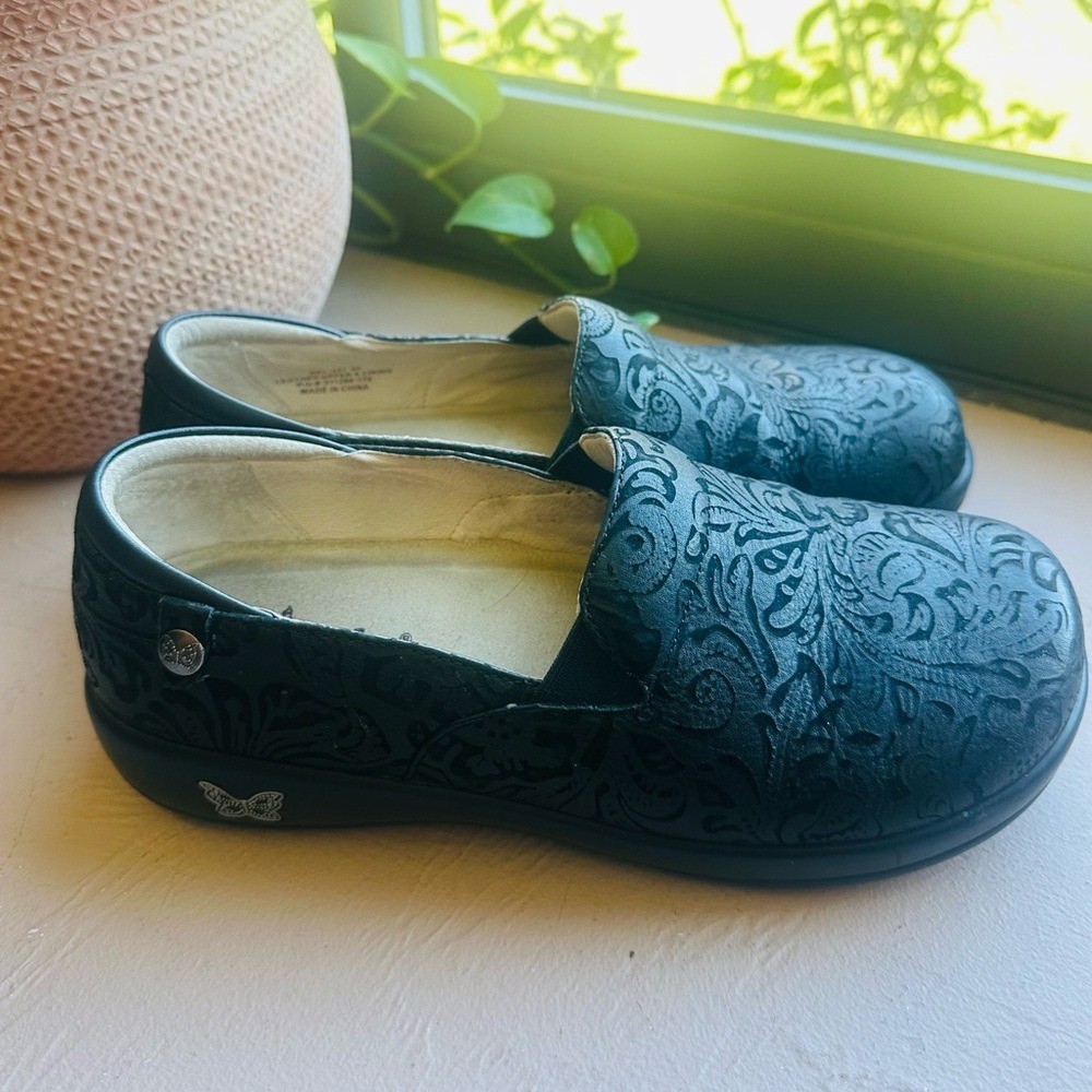 Master every task in slip-on shoes you don't even have to think about. The comfy Keli is built with a stain-resistant upper and slip-resistant outsole. From Alegria. Style: Keli Stain-resistant upper, slip-on style Removable footbed, slip-resistant outsole APMA Seal of Acceptance Approximately 1-1/2"H heel Leather upper; man-made balance Condition Preloved❤️ Smoke free home. I ship next day.