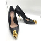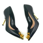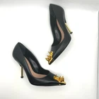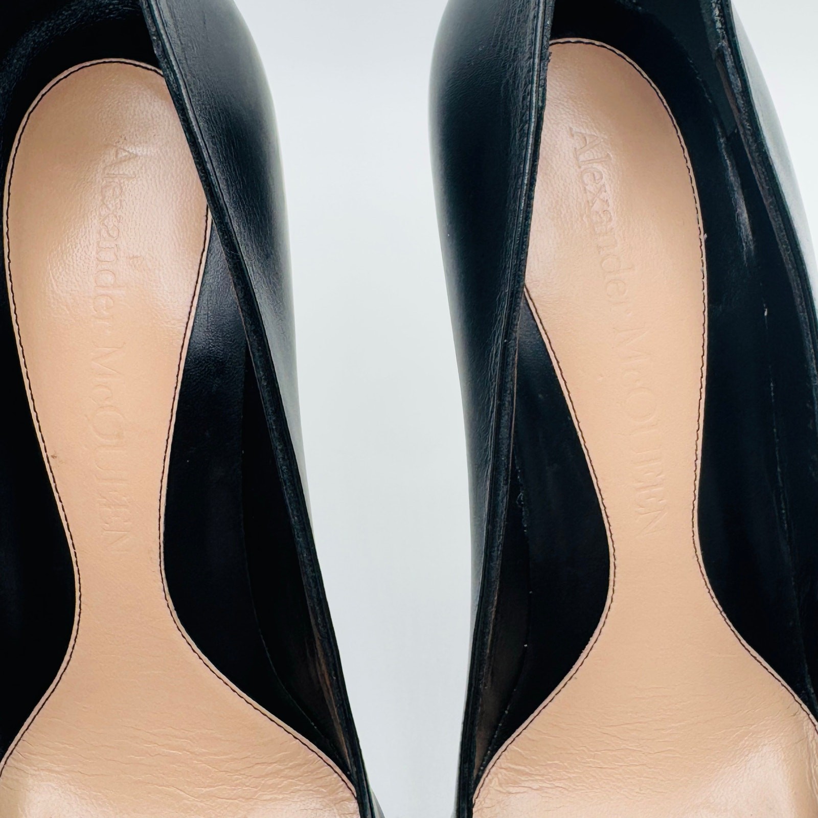 Alexander McQueen Black & Gold Studded Pointed Toe stiletto Pumps IT 39 These Alexander McQueen Studded Pointed Toe Pumps are a striking statement piece. Crafted in sleek black leather, they feature gold-tone metal studs adorning the pointed toes for a bold, edgy touch. The design is elevated with slim gold-tone stiletto heels, creating a sophisticated balance between luxury and rebellion. Perfect for pairing with minimalist or avant-garde outfits, these pumps command attention and exude confidence. EXCELLENT CONDITION They show some wear on bottom soles, minor scratches at hardware and a scuff on the heel - see pictures please !!! Dimensions: Heel: 4.09 inches 100% Leather, 100% Rubber Made in Italy leather, studs, solid color with appliqués, leather lining, pointed toe, spike heel, leather sole, contains non-textile parts of animal origin, stilettos Measurements are approximate tags: fall, autumn, winter, cool weather, boho, bohemian, mini, tiered, ruffle, fit & flare, long sleeve, date night, night out, event, evening, special occasion, cocktail, dinner, career, business, work, workwear, professional, fashion, fashionable, trendy, wedding, bride, trendsetter, ootd