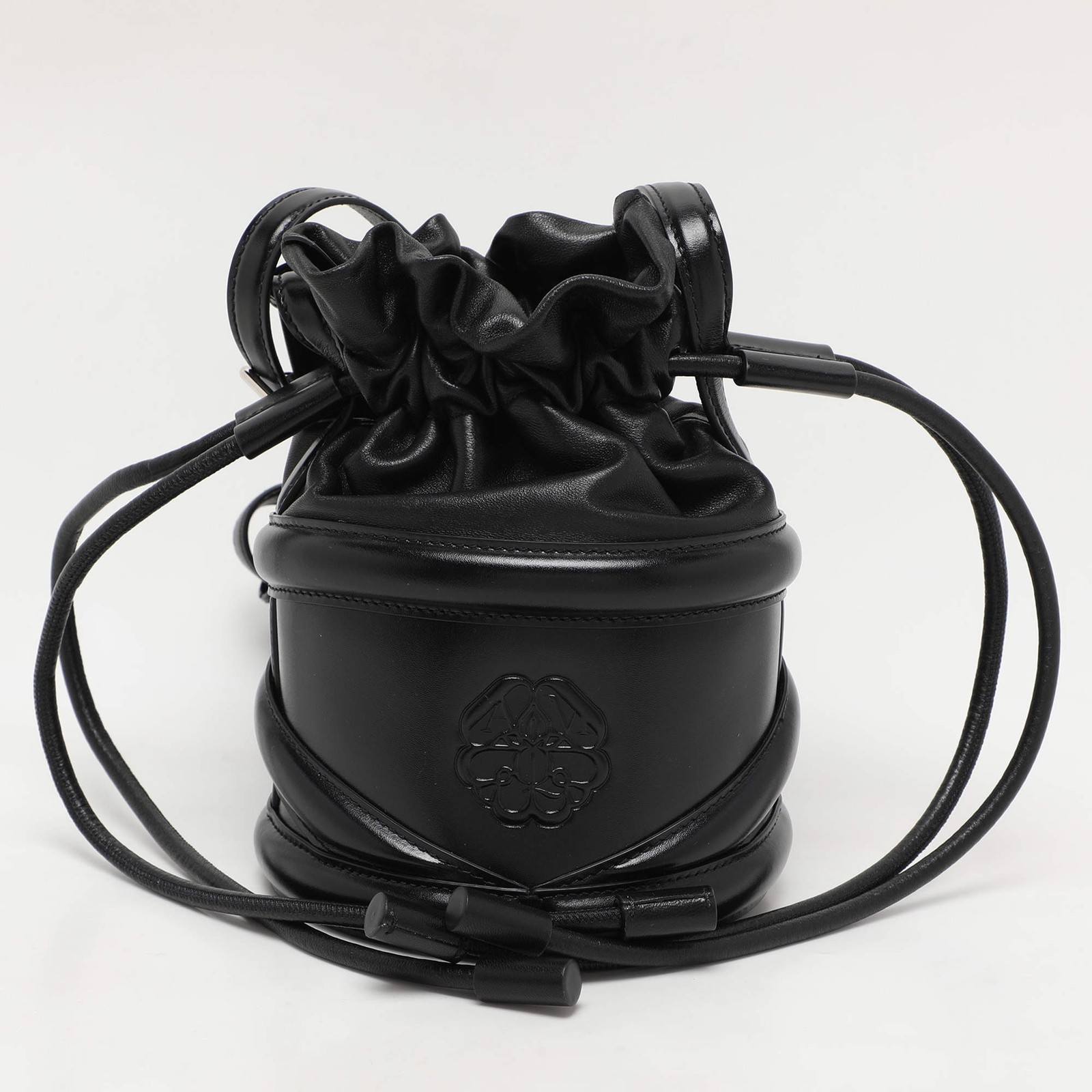 Our eBay Store About Us Contact Us Add to Favorite Sellers Alexander McQueen Black Leather The Soft Curve Drawstring Bucket Bag Crafted in Italy, this exquisite black leather bucket bag, a creation by Alexander McQueen, embodies sophisticated elegance. The supple leather exterior and matching interior exude luxury, while the unique drawstring design offers both practicality and modern flair. Its sleek, minimalist silhouette is perfectly complemented by a generously long handle drop, ensuring comfort and style. This handbag is a testament to fine craftsmanship and an ideal accessory for those who appreciate timeless fashion with a modern twist. Product Details Brand Alexander McQueen Includes Original Dustbag, Original Box Certified by The Luxury Closet This item has gone through a detailed authentication process overseen by our experts. We offer a lifetime guarantee of authenticity on all our items. How We Check The in-house team of experts at The Luxury Closet is highly trained to verify the authenticity and the condition of the luxury products. They ensure that only 100% authentic items are put on sale.The evaluation process is unique with its own mix of assessment criteria and differs according to the category. Each item is evaluated based on the following combination of hallmarks, hardware, stitching, symmetry, material, craftsmanship, stamping, codes, hologram stickers, and packaging. Our authenticators also check if the items have been modified or amended (e.g., aftermarket diamonds, replaced batteries, repaired bags, etc.) Please note that this handbag may have a perfume scent, as it was stored and packaged in Dubai where such fragrances are commonly used. International Buyers Import duties, taxes and charges are not included in the item price. These charges are the buyers responsibility. Please check with your country’s customs office to determine what these additional cost will be prior to buying.
