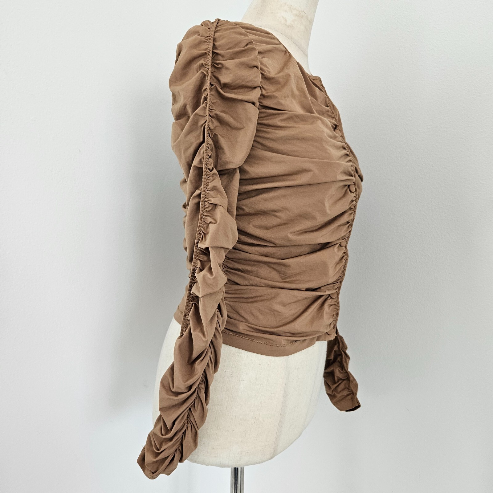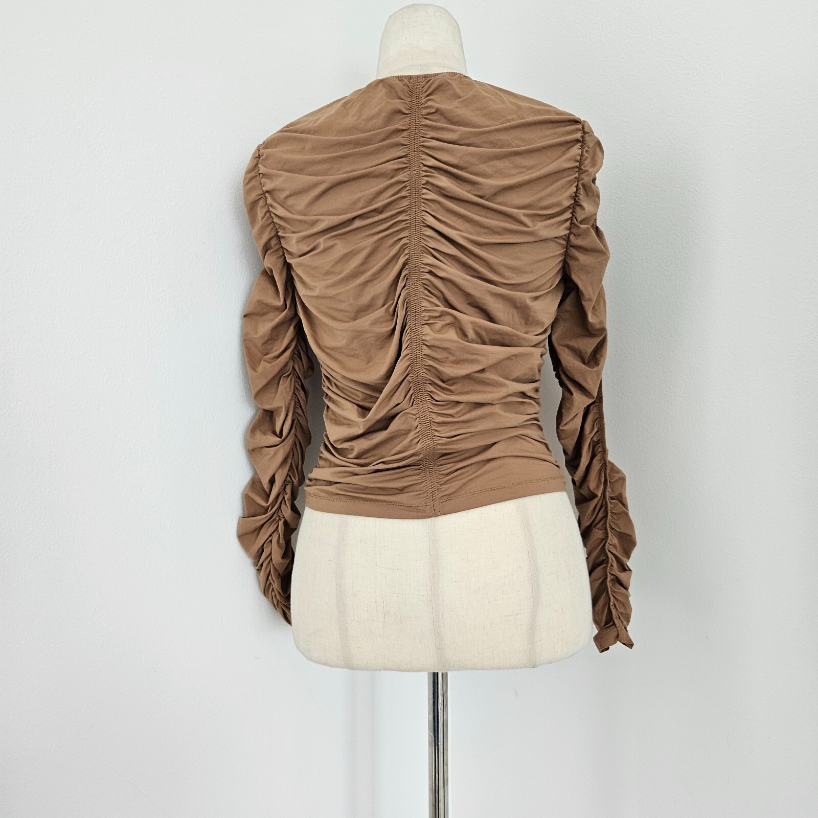 Alexander Wang Ruched Long Sleeve button up Top Attributes Material: 80% Polyamide Color: Brown Size: Medium Condition: Excellent