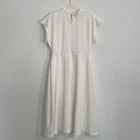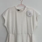 Details: Beautiful and sophisticated fit & flare dress Crew neck Cap sleefes Unlined Textured Hidden Side pockets Fringed tim Great for any special occasion, I added the flower for a special touch Length: 48”