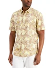 Alfani Men's Barello Leaf Knit Back Short Sleeve Button Down Shirt Size: Large Color: Yellow CBO Front Body and Sleeves: 97%Cotton, 3%Spandex Back Body:94%Cotton, 6%Spandex
