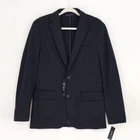 Alfani Men's Black Knit Stretch Rayon Casual Modern-Fit Suit Jacket Size S New with tags MSRP $140 Style and comfort with the modern fit Athletic fit through the shoulders, chest and waist with higher armholes and trimmer sleeves Soft knit stretch fabric Center vent Notched lapel Two-button closure Four-button cuffs Two front flap pockets Left chest welt pocket Interior pocket Unlined 65% rayon, 30% nylon, 5% spandex Machine wash Length 29" Armpit to armpit 19" Sleeve 26" Shoulders 18"