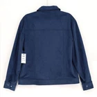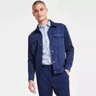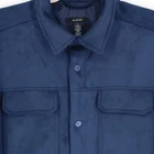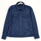 Alfani Men's Navy Blue Stretch Faux Suede Casual Regular Fit Chore Jacket Size S New with tags MRSP $140 Casual chore jacket featuring a classic silhouette styled in rich faux-suede fabric Regular fit Spread collar Snap-button front closure Long sleeves Snap-button cuffs Lined Two front hand pockets Two flap pockets at chest One interior pocket Faux-suede shell: 92% polyester, 8% spandex Lining: 100% polyester Hand wash Length 26" Armpit to armpit 22" Sleeve 24"