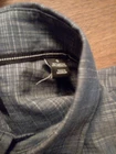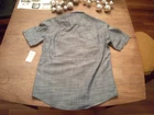 This is an Alfani Men's Warren Textured Short Sleeve Button Down Shirt in size small. The shirt features a solid blue color with a collared neckline and a button-down closure. Made from a blend of polyester and cotton, this shirt is machine washable and suitable for various occasions such as travel, weddings, parties, casual wear, formal events, work, and business. With a regular fit and short sleeves, it is a versatile piece that can be worn in different seasons like winter, summer, fall, and spring.