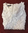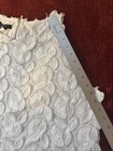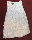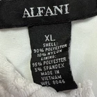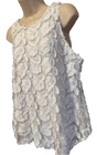 Stunning unique Alfani blouse This is really versatile and elegant. It can be dressed up or down. The white on white embroidered floral/leaf fringe design is very eye catching. I provide close up pix for detail. XL-regular Sleevless Pullover-zips in back polyester (90%) and nylon 10% stretch lining round neckline machine washable See pictures for best description. I provide extra measurements to help ensure a proper fit. Please look carefully at all measurements. I am available to answer questions. My number one priority is customer satisfaction. I ship same day or next day so your item arrives quickly. I have a return/refund policy so you can shop with confidence. Thank you for looking and have a great day.