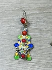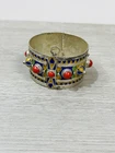 The six piece Algerian Berber Kabyle Sterling Silver Enamel Necklaces, Ring Bracelet, ear rings and Brooch Set Are all in very good condition they do show some signs of age and wear. And have been left unpolished to retain their natural patina.. the bracelet has an internal diameter of 2 1/2 inches, with an external measurement of 8 1/4 inches around. The earrings measure 2 1/2 inches long. both necklaces measure 16 inches long, with what I believe is a brooch or pendant, I’m not sure as it doesn’t have a typical fastener , it has a pointy end. It measures 4 1/2 inches by about 3 inches. The ring is a size 6 1/2.
