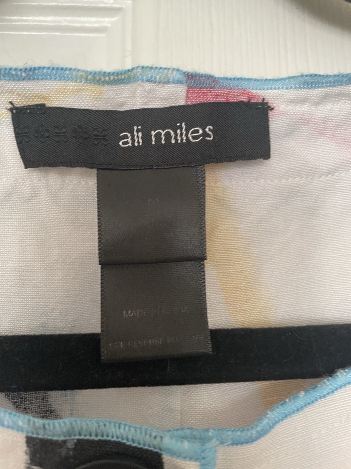 Ali Miles Round neck Tunic Multicolor Abstract Button Down Shirt M. Condition is Pre-owned - Good. Shipped with USPS Ground Advantage.