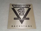Alice Cooper Special Forces Vintage Original VIP Concert Unused Backstage Pass Measures approximately 3 1/2" x 4 1/4". Item has discoloration, marks and creasing from age, handling and storage. Please see photos for more information on condition and ask any questions you may have. This would be a nice addition to any collection.