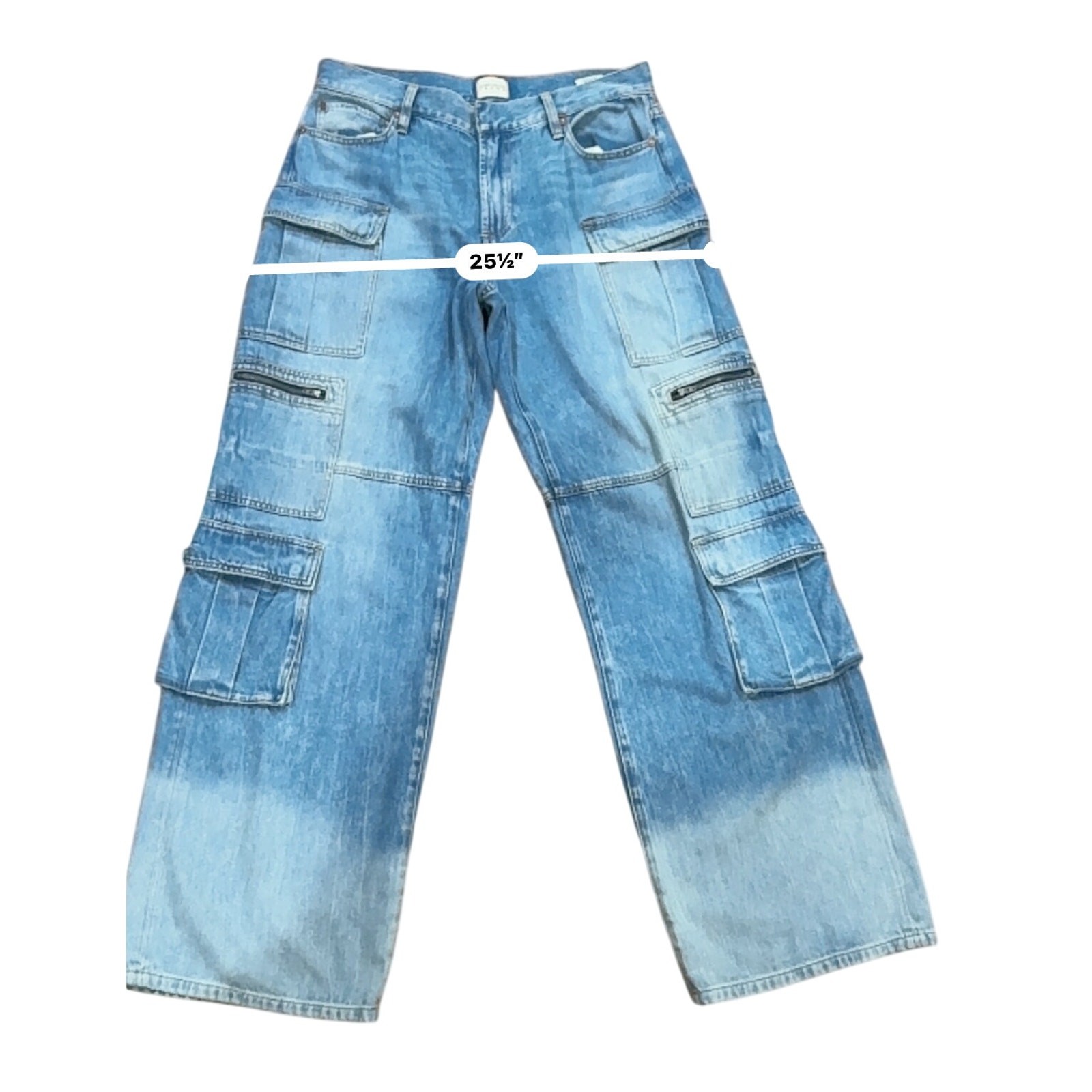 Alice + Olivia Cay Ombré Light wash Wide Leg Cargo Jeans Size 31 Baggy High Rise Excellent condition Ombré legs give cool distinction to these streetwear-inspired jeans cut from stretch-enhanced denim packed with plenty of cargo pockets. • 34 1/2" inseam, 21" leg opening; 10" front rise; 14 1/2" back rise (size 29) • 62% cotton, 38% lyocell • Machine wash, line dry Measurements are approximate Please expect wrinkles from Storage !! tags: fall, autumn, winter, cool weather, boho, bohemian, mini, tiered, ruffle, fit & flare, long sleeve, date night, night out, event, evening, special occasion, cocktail, dinner, career, business, work, workwear, professional, fashion, fashionable, trendy, trendsetter, ootd
